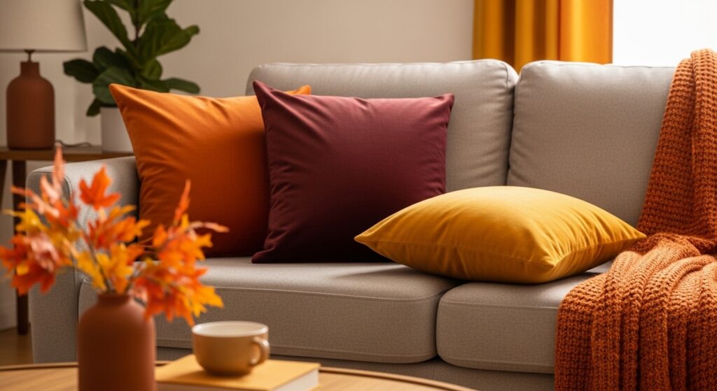 Layer multiple autumn shades rather than relying on single colors for depth and sophistication. The warm palette works with existing neutral furnishings, simply adding seasonal accents that can rotate out when winter arrives. Consider the psychology of color—warm tones create feelings of comfort, security, and intimacy perfect for fall’s nesting impulse. Store summer’s bright pillows and accessories, rotating in fall-appropriate colors that honor the season. This foundational color shift requires minimal investment yet delivers maximum seasonal impact, proving that thoughtful color choices fundamentally alter how spaces feel and creating rooms that visually embody autumn’s warmth.