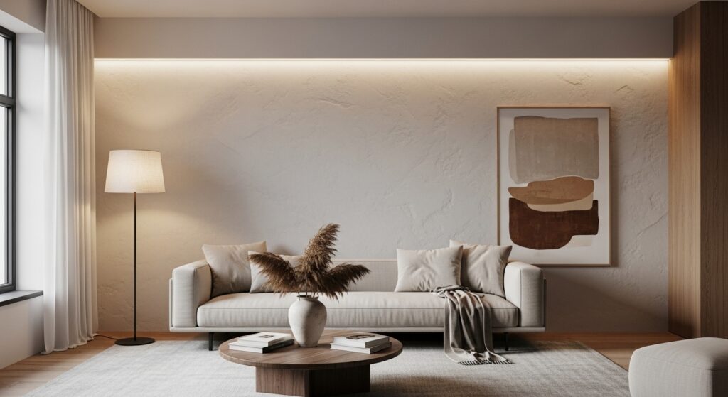 Textured plaster walls add subtle elegance and depth. The soft, uneven finish reflects light beautifully and feels high-end. This style suits modern, Mediterranean, and minimalist interiors, offering a calm backdrop without needing bold colors or heavy décor.
