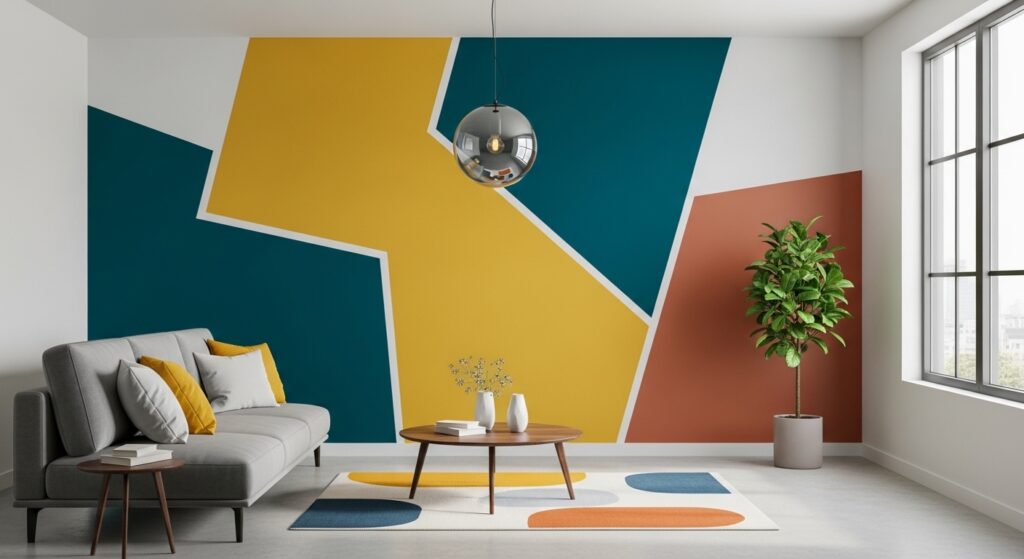 Geometric patterns bring creativity and structure to your walls. Using painter’s tape and two or three colors, you can design a modern accent wall that feels stylish yet playful. It’s perfect for bedrooms, offices, or creative spaces needing visual energy.