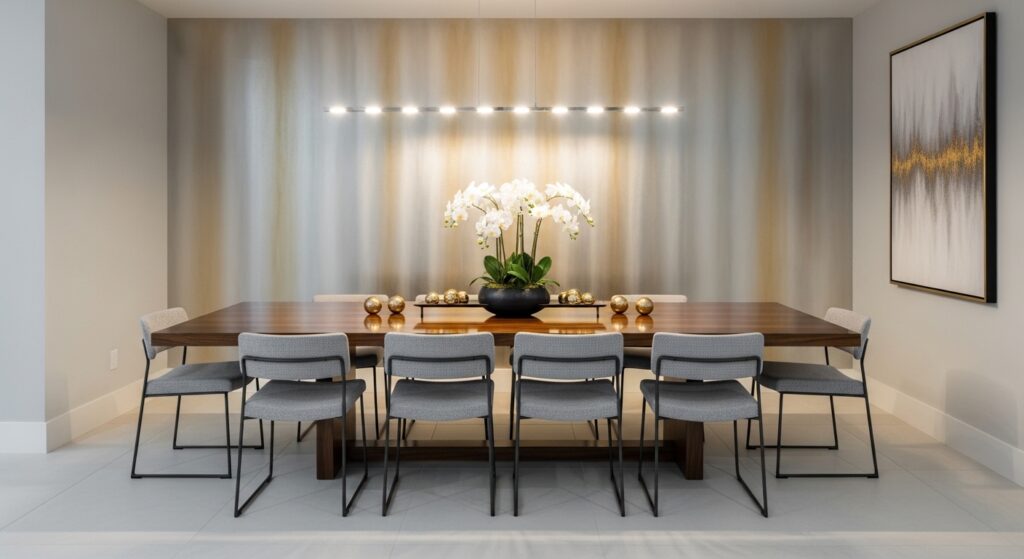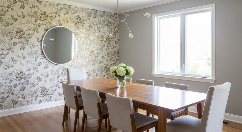 Metallic finishes add glamour and light reflection. Soft gold, bronze, or silver tones work best for accent walls, creating a refined statement. This style pairs well with modern or luxury interiors without feeling overpowering.