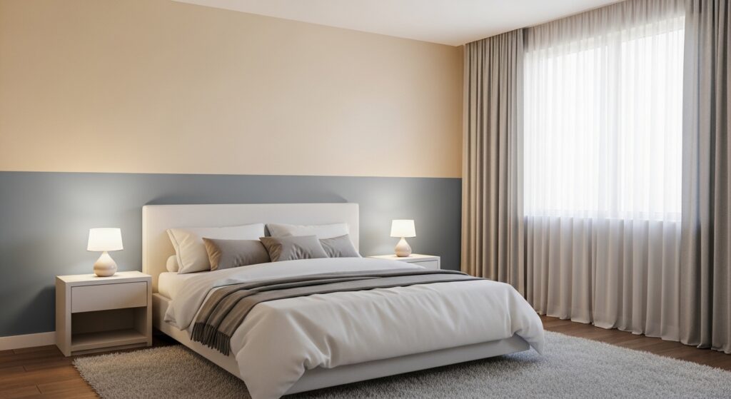 A two-tone accent wall adds interest using simple paint techniques. Dividing the wall horizontally or vertically creates balance and structure. This idea is budget-friendly and ideal for renters or beginners looking to try accent walls.