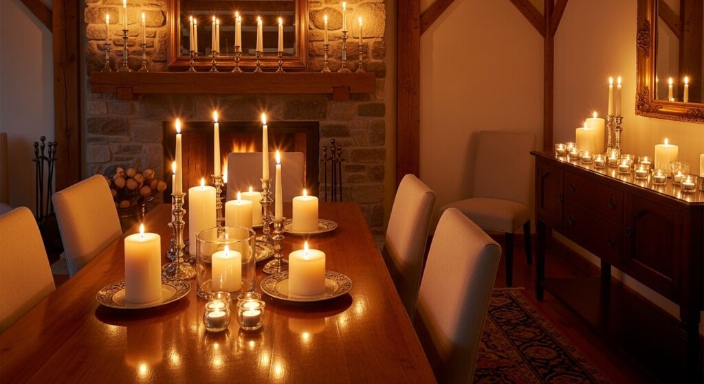 The abundant flickering light creates festivity that overhead lighting simply cannot achieve. Candlelight is inherently flattering, making everyone look their best during photos and celebrations. The dancing flames create movement and life that makes spaces feel dynamic and special. For safety with large gatherings, consider high-quality LED candles with realistic flickers that provide similar ambiance without fire concerns.