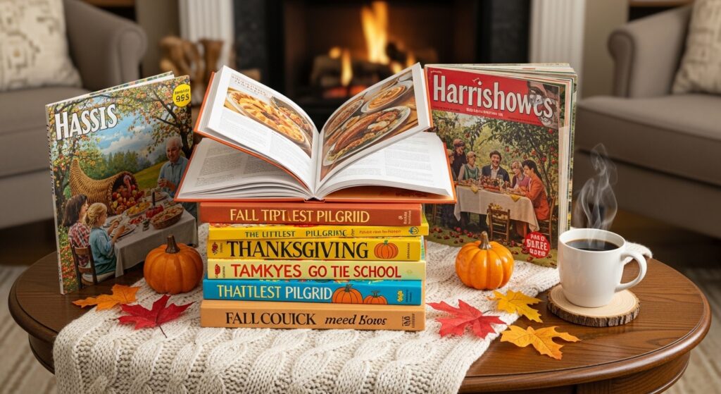 Seasonal books and magazines provide entertainment while creating inviting, lived-in atmosphere throughout your home. Stack fall cookbooks and Thanksgiving recipe collections on coffee tables for guests to browse during conversation lulls. Include children’s Thanksgiving story books that occupy young guests while celebrating the holiday’s meaning. Add vintage magazines featuring fall entertaining or Norman Rockwell Thanksgiving covers for nostalgic visual appeal and conversation starters.