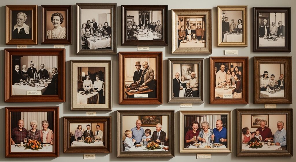 This visual family history becomes a powerful reminder of why you gather and what you’re grateful for. Guests naturally gravitate to the photo wall, studying images and sharing stories about people and moments captured. It helps newer family members learn history and feel more connected to established traditions. The photos honor people who cannot attend while keeping their memory present in the celebration and hearts.