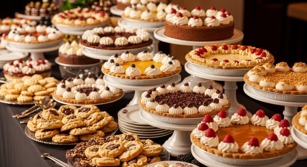 This abundant display makes desserts feel like a special separate course rather than afterthought. The visual presentation makes everything more appealing and celebration-worthy, encouraging people to try multiple offerings. Setting up before dinner allows you to relax during the meal rather than scrambling afterward. Guests can serve themselves at their own pace, reducing hosting pressure and extending the celebration naturally and comfortably.