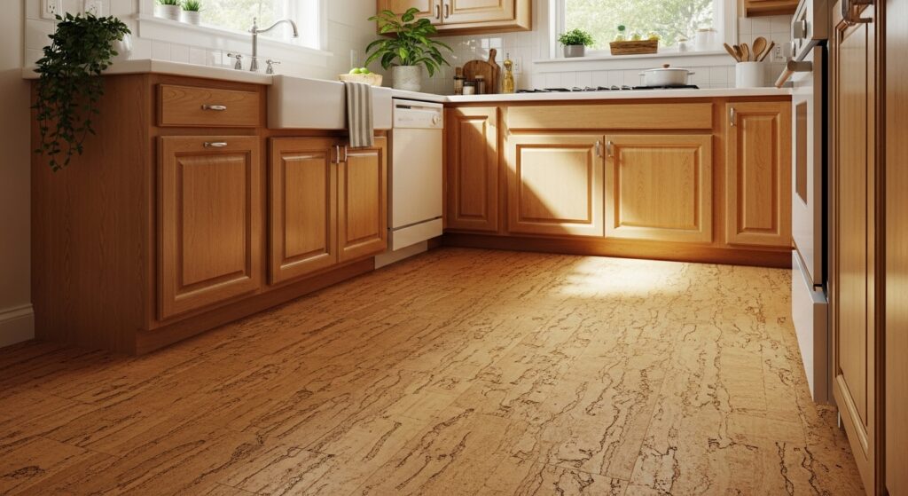 Cork flooring offers remarkable sustainability because it’s harvested without harming trees. Cork comes from the bark of cork oak trees, which regenerates after harvesting every nine years. The trees continue living and absorbing carbon dioxide for their entire two-hundred-year lifespan. Cork’s natural properties include antimicrobial characteristics, natural resistance to mold and mildew, and excellent insulation. The material feels warm and cushioned underfoot, making it comfortable for standing and gentle on joints.