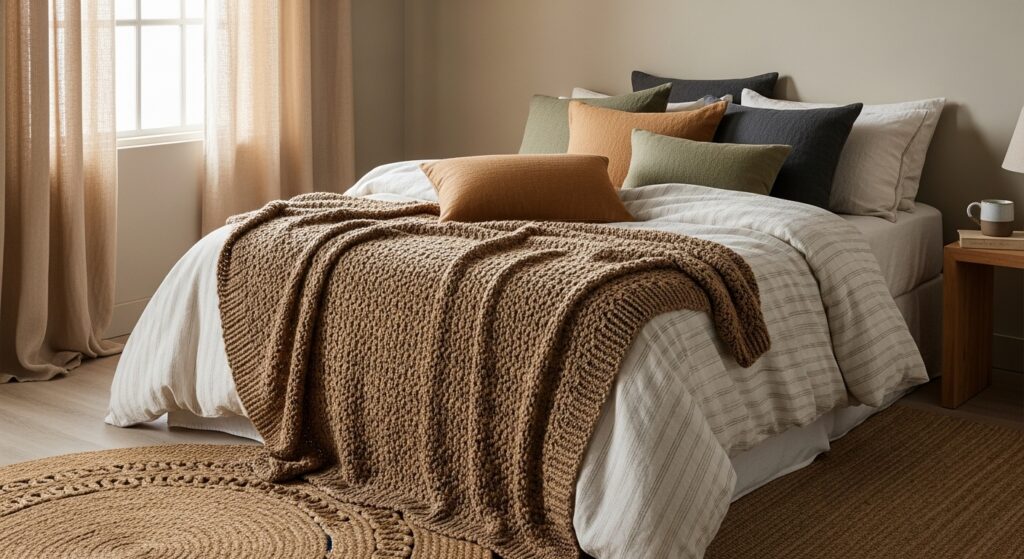 These natural materials breathe better than synthetics, creating more comfortable sleeping and living environments. They don’t off-gas harmful chemicals like many synthetic fabrics treated with flame retardants and stain protectors. Natural fibers are biodegradable, returning to earth rather than filling landfills for centuries. The neutral earth tones of undyed natural fibers create calming, organic palettes. These materials often last longer than synthetic alternatives, reducing replacement frequency and waste. Choosing natural fiber textiles creates tangible connections to the earth while supporting sustainable farming practices and healthier homes.