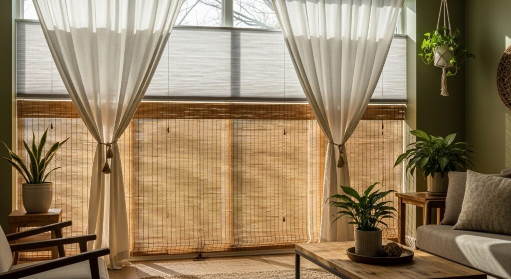Sustainable window treatments provide insulation, light control, and beauty using eco-friendly materials. Bamboo roller shades offer renewable material with natural texture and clean aesthetics. Organic cotton curtains provide softness without pesticide-intensive conventional cotton. Cellular honeycomb shades trap air in pockets, creating insulation that reduces heating and cooling costs. These natural materials avoid the off-gassing associated with synthetic window coverings treated with chemicals.