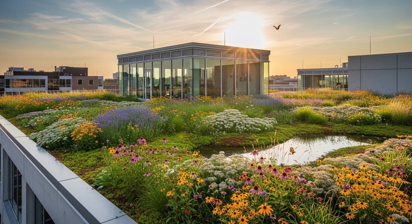 Green roofs transform unused rooftop space into living ecosystems with multiple environmental benefits. The vegetation layer provides natural insulation, reducing heating and cooling costs significantly. Plants absorb rainwater, reducing stormwater runoff that overwhelms urban drainage systems. Green roofs filter air pollutants, produce oxygen, and reduce urban heat island effects. They create habitat for birds, butterflies, and beneficial insects even in dense urban environments.