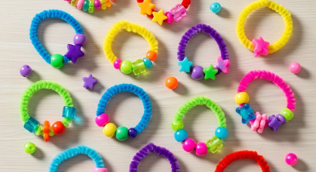 Thread colorful beads onto pipe cleaners, then twist the ends together to create simple bracelets, rings, or necklaces perfect for little hands. This activity strengthens fine motor skills, teaches patterns and counting, and results in wearable art kids are proud to show off. Choose larger beads for younger children and smaller ones for more intricate designs and older crafters.