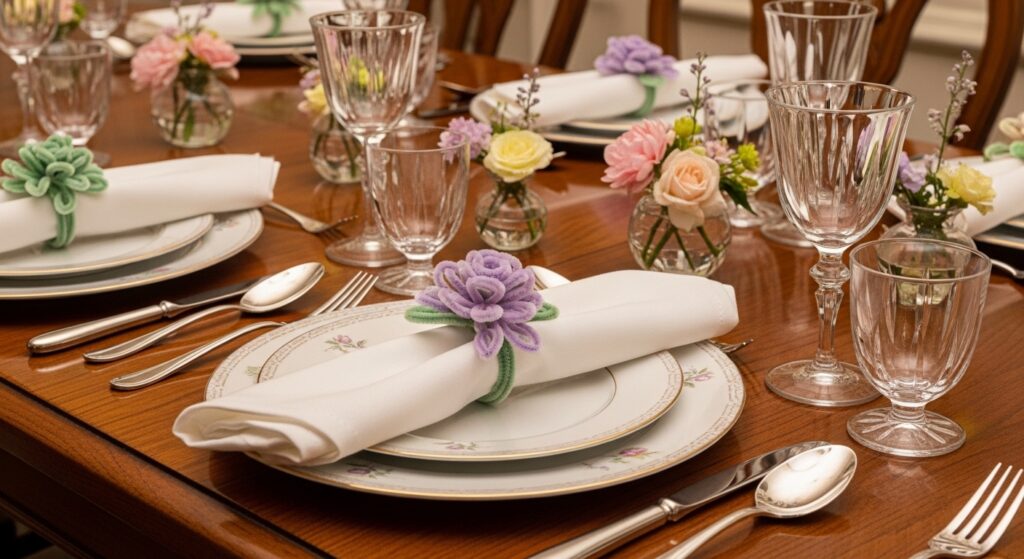 Twist two or three pipe cleaners together, shape into rings that fit around rolled napkins, then add decorative twists, bows, or flower shapes. Create colors matching your table setting or holiday theme. These reusable napkin rings add a handmade touch to family dinners or special occasions while being gentle enough not to snag fabric napkins.