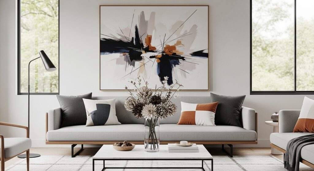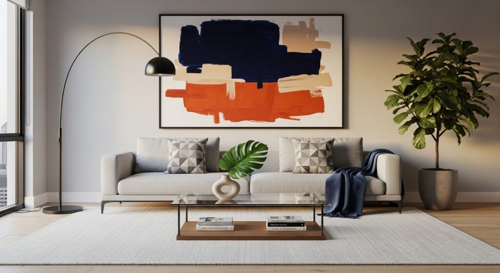 Wall art adds personality and sophistication to a living room. A single large artwork or a small gallery arrangement can enhance the overall design while maintaining a classy look.