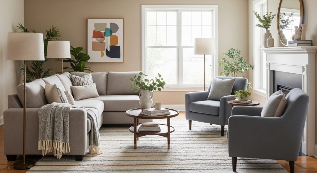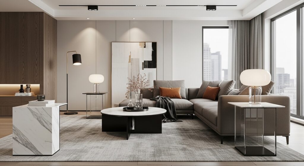 Accent chairs add additional seating and visual interest. Choosing chairs with elegant shapes or soft fabrics can elevate the room’s overall style.
