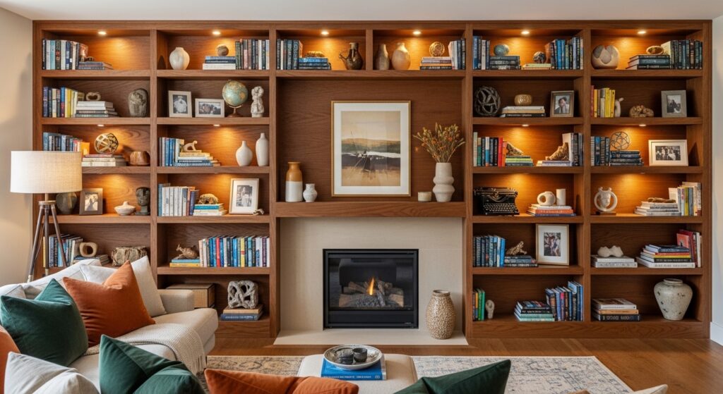 Built-in shelves provide practical storage while allowing you to display books, plants, and decorative objects in a stylish and organized way.