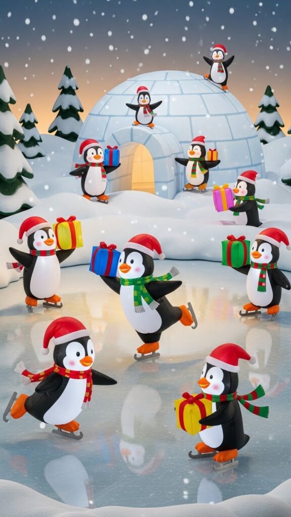 Penguin inflatables bring adorable arctic charm to Christmas displays with their tuxedo-like coloring and playful personalities. These delightful characters appear in various festive scenarios—ice skating, building snowmen, delivering presents, or simply celebrating the season. Many designs dress penguins in Santa hats, colorful scarves, or earmuffs, creating whimsical combinations of arctic wildlife and Christmas tradition. The black and white coloring provides elegant contrast against snowy backgrounds while colorful accessories add pops of festive cheer. Penguin displays appeal especially to families with young children and animal lovers.