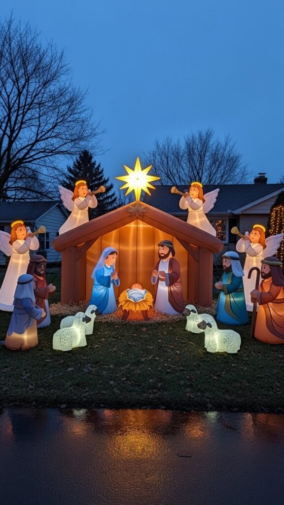 For families who honor the religious significance of Christmas, nativity scene inflatables provide meaningful outdoor decorations. These thoughtful designs feature the holy family—Mary, Joseph, and baby Jesus in the manger—often accompanied by angels, shepherds, and the guiding star above the stable. The gentle illumination creates a peaceful, reverent atmosphere that reminds viewers of Christmas’s spiritual foundation. Quality designs include dimensional details and respectful artistic rendering that portrays this sacred scene with appropriate dignity and beauty.