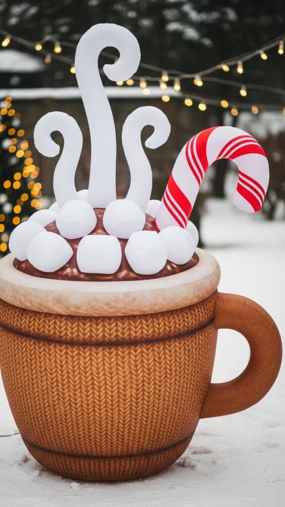 Food-themed inflatables work wonderfully in displays that embrace whimsy and fun over traditional religious or Santa imagery. They’re excellent conversation pieces that make people smile and remember their own holiday food traditions. Position these cheerful decorations near entrances to welcome guests with warm, comforting symbolism, or group them with other treat-themed decorations to create a candy land or winter café aesthetic. The non-traditional subject matter offers refreshing alternatives for those wanting to avoid oversaturation of standard Christmas characters while maintaining festive, celebratory displays.