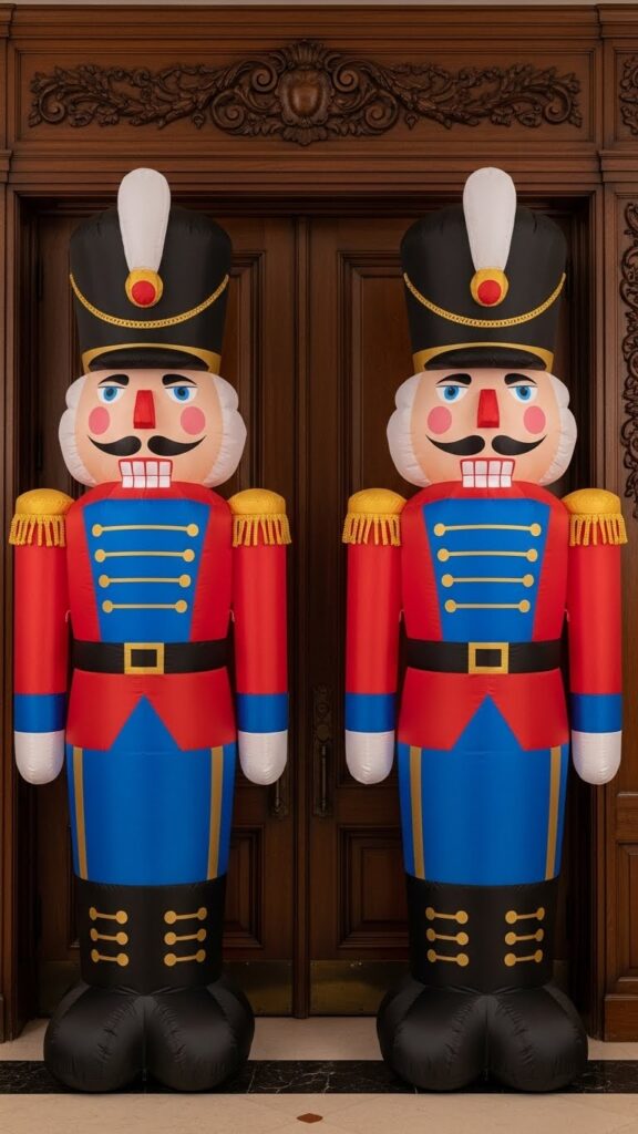 The nutcracker theme carries cultural sophistication and artistic heritage that appeals to ballet lovers, music enthusiasts, and those who appreciate decorations with story connections. These inflatables reference Tchaikovsky’s famous music and the cherished holiday ballet tradition many families attend annually. Position nutcrackers in formal arrangements that emphasize their military bearing—standing at attention beside entrances or lining pathways like honor guards. The bold colors and distinctive design create striking visual impact while maintaining elegance. Nutcrackers pair beautifully with other traditional Christmas elements and especially complement displays that include toy soldier or vintage toy themes.