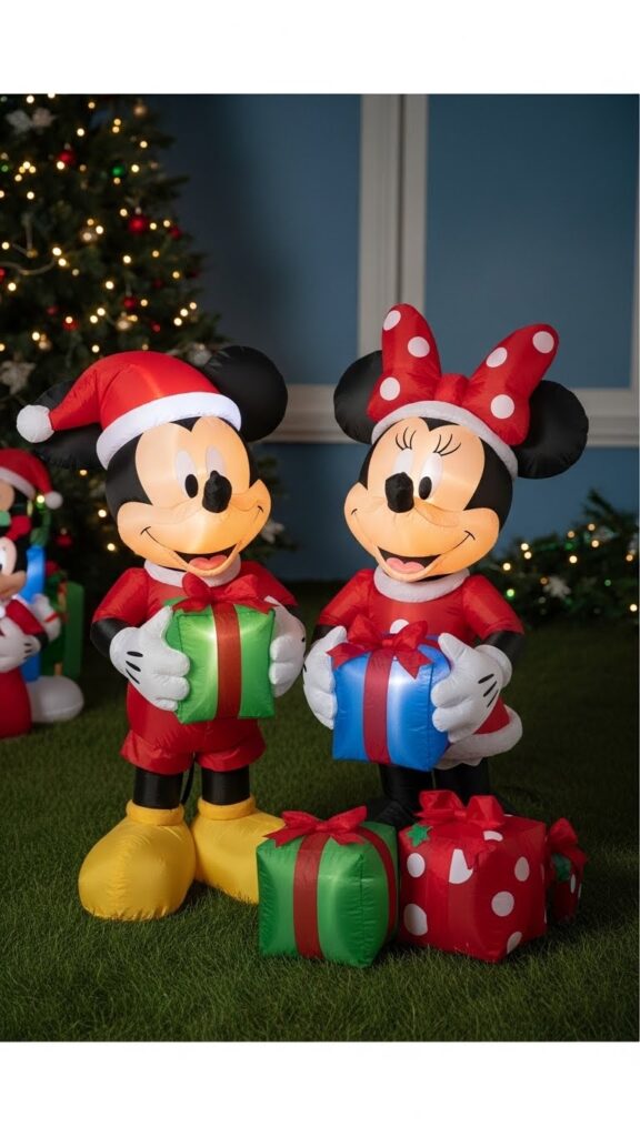 Disney character inflatables bring beloved personalities to Christmas celebrations with official licensed designs. Mickey and Minnie Mouse appear in festive holiday outfits—Santa and Mrs. Claus costumes, ugly Christmas sweaters, or winter wonderland attire—spreading Disney magic throughout your yard. These designs feature the characters’ signature features and expressions that fans recognize instantly. The combination of timeless Disney appeal with Christmas celebration creates decorations that delight multiple generations, from grandparents who grew up with these characters to young children experiencing Disney magic for the first time.