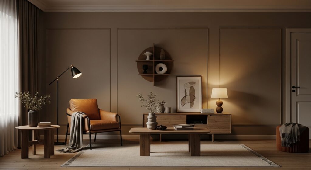 Greige — that beautiful blend of gray and beige — is the ultimate neutral base. Pair it with natural wood furniture in honey or walnut tones and you get a space that feels warm without being heavy. Add a cream linen sofa to tie it all together beautifully.