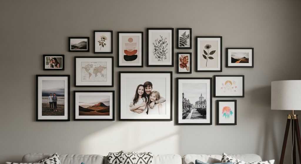 This approach lets you fill large wall spaces without investing in expensive oversized art. Include a mix of family photos, inspirational prints, travel memories, and children’s artwork for genuine personality. The beauty of gallery walls is their flexibility you can easily swap out pieces as your style evolves. Start with what you already own, then gradually add new pieces that complement your existing collection.