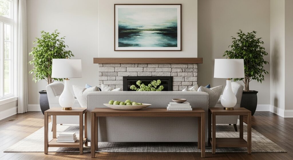 Symmetrical arrangements create instant harmony and visual calm that feels professionally designed. Flank your sofa with matching table lamps on identical side tables for balanced illumination. Place identical planters or decorative items on either side of your fireplace or entertainment center. This mirrored arrangement satisfies our inherent attraction to balance and order.