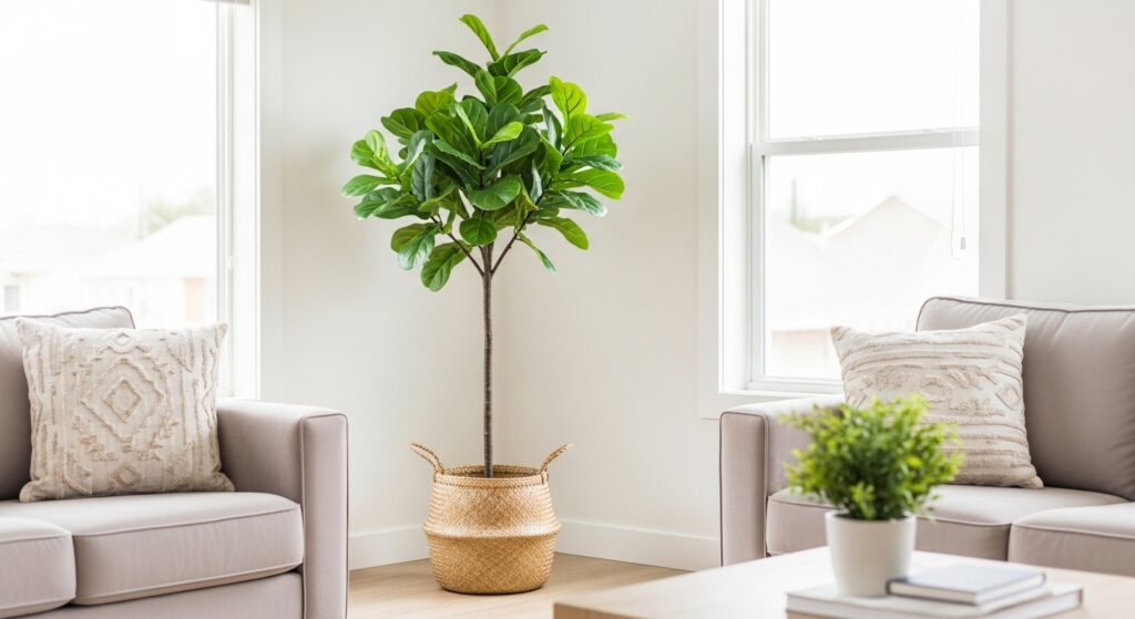 The vertical element draws eyes upward, making rooms feel taller and more dynamic. Choose planters that complement your aesthetic woven baskets for bohemian warmth, ceramic pots for modern clean lines, or metallic containers for glamorous touch. Large plants require less frequent watering than smaller ones, making them surprisingly low-maintenance. This single addition transforms your living room by adding life, color, and organic beauty that changes and grows with time.