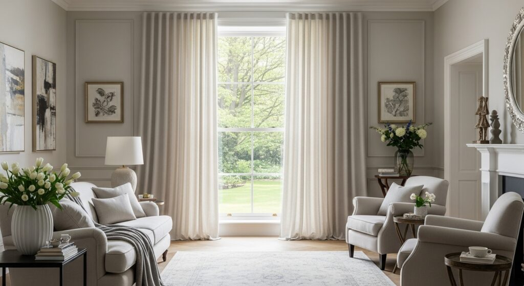 Curtains instantly add softness, color, and polish that bare windows lack. Hang curtain rods close to the ceiling rather than just above windows to create illusion of height. Extend rods beyond window frames to make windows appear larger when curtains are open. Choose curtains that reach the floor or even puddle slightly for luxurious, finished appearance.
