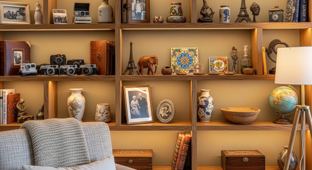 Your personal collections add authenticity and character that generic décor cannot replicate. Display vintage cameras, travel souvenirs, or ceramic pieces you’ve gathered over time in curated arrangements. Group similar items together in odd numbers for visual impact. Mix collections with books and plants to prevent overly cluttered appearance.