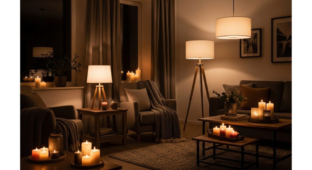 Proper lighting transforms how your living room looks and feels at any time of day. Combine table lamps on side tables, floor lamps in corners, and overhead fixtures to create layers. This variety allows you to adjust lighting based on activity and mood bright for reading, dim for movie nights. Multiple light sources eliminate harsh shadows and create warm, inviting atmosphere.