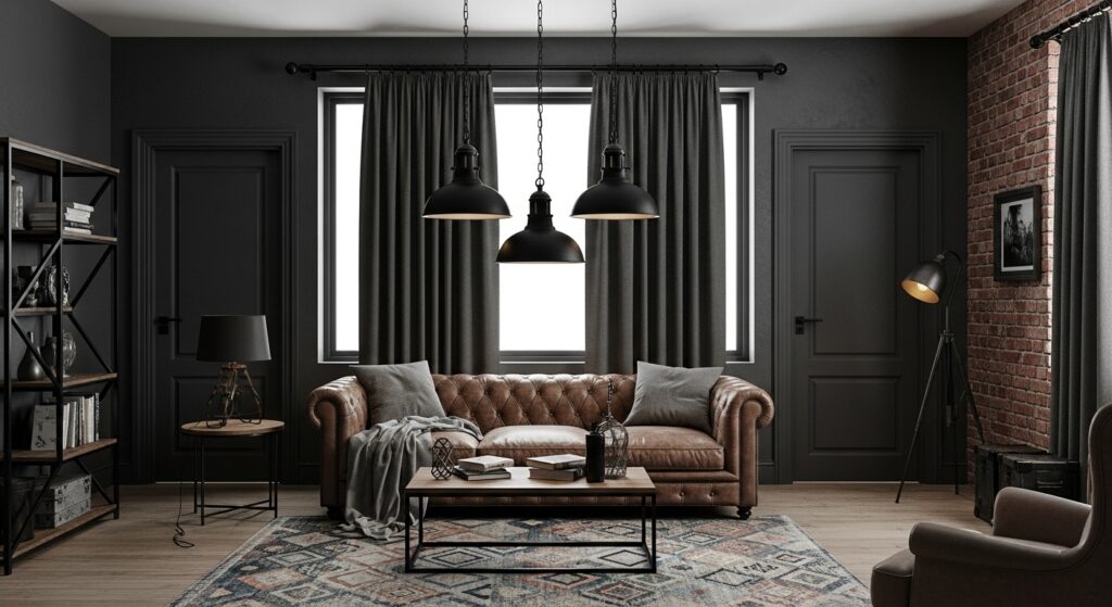 Black metal adds industrial edge and modern sophistication to moody living rooms of any style. The dark fixtures virtually disappear against dark walls while still providing essential function and structure. Matte finishes feel more sophisticated and less fingerprint-prone than glossy alternatives throughout your space. The dark metal coordinates with both warm and cool undertones in your color palette. These detailed updates create polish and that pulled-together appearance that separates professionally designed moody spaces from simply dark rooms.