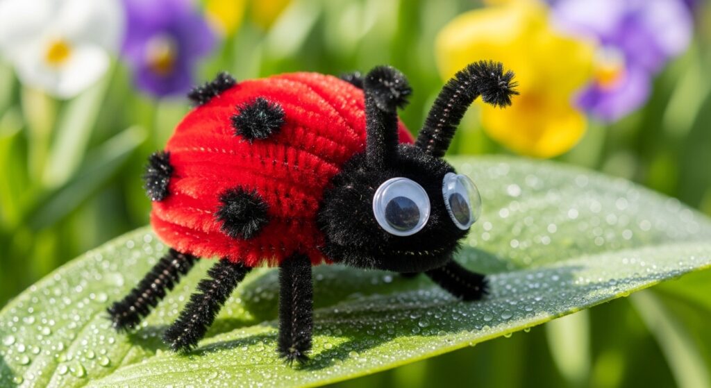 Form ladybugs by creating red oval bodies with black pipe cleaner spots, legs, and antennae. Discuss beneficial insects and garden ecology while crafting. This spring science craft teaches about helpful insects, garden ecosystems, and pest control while creating adorable bugs that aren’t scary, making insect studies more appealing to sensitive children.