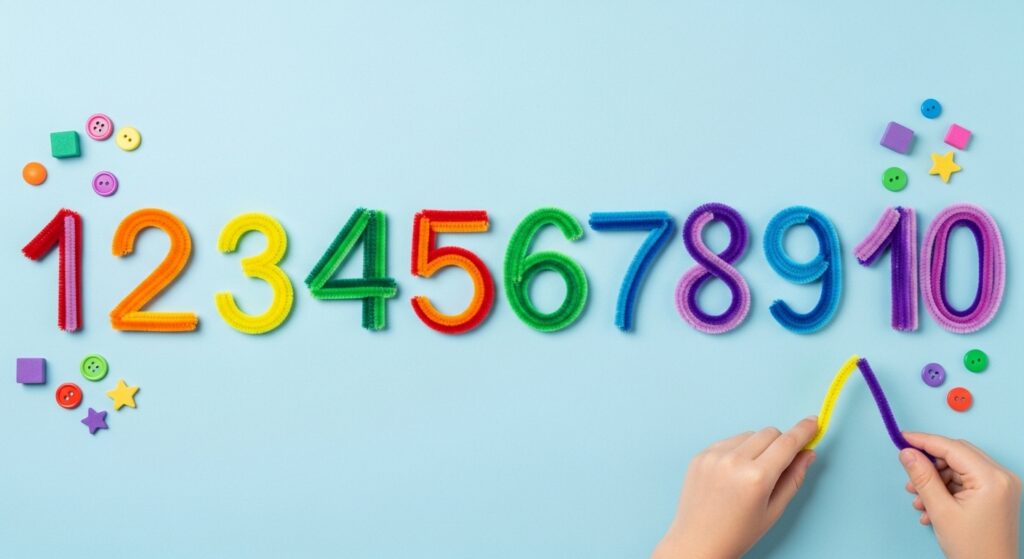 Form numbers 0-10 using bent pipe cleaners, helping children learn number shapes and sequences. Use different colors for each number or create rainbow sets. This math-focused craft supports early numeracy skills, one-to-one correspondence, and number recognition while creating classroom displays or individual learning tools children manipulate during lessons.