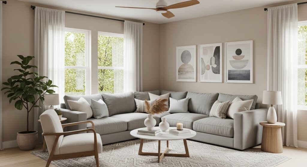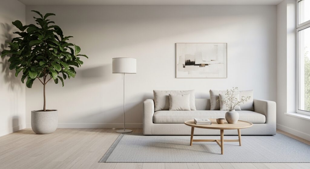 Choose fewer but better decor pieces. Quality over quantity keeps your minimalist living room stylish yet peaceful.