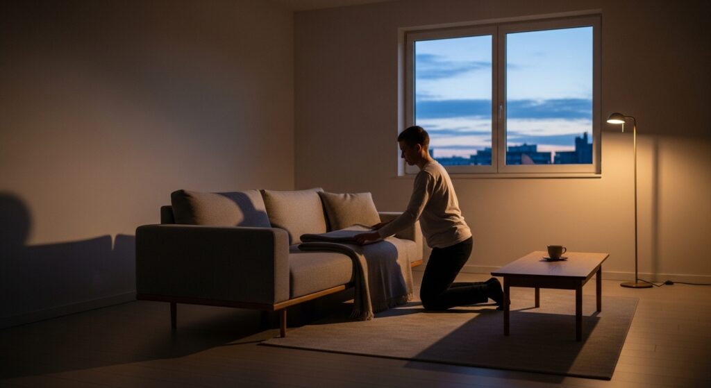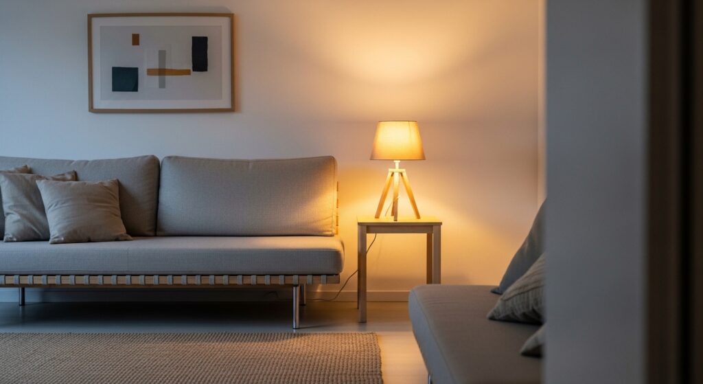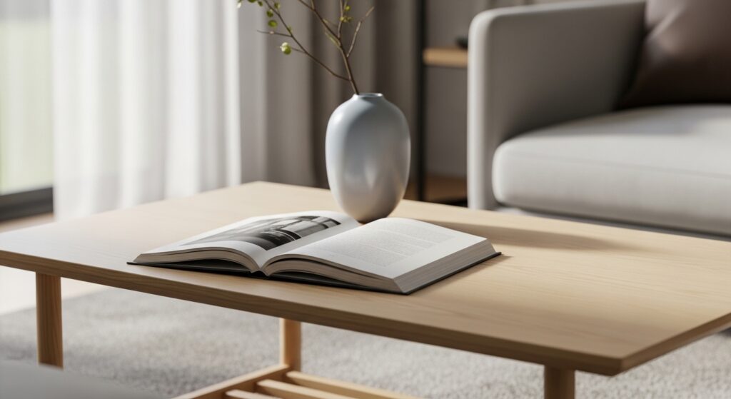 Spend five minutes each night returning items to their place. This small habit keeps your living room consistently calm and clutter-free.