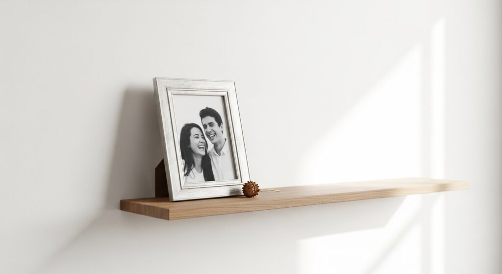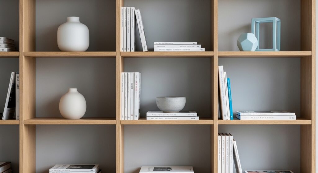 Remove excess books and random items. Keep only favorites and leave space between objects. This instantly upgrades your shelves into a clean, intentional focal point.