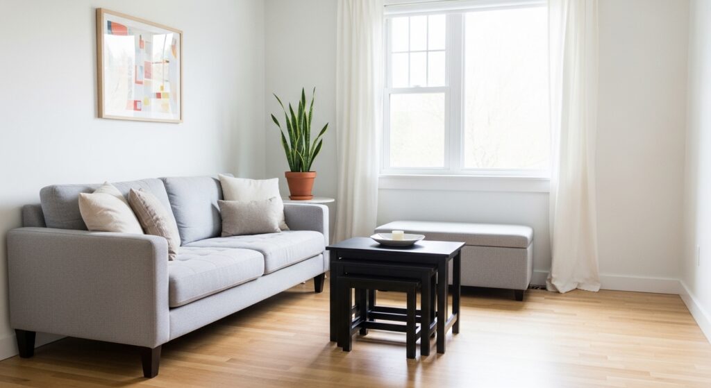 Furniture that serves more than one purpose reduces the need for extra pieces. Think storage coffee tables or foldable seating. Smart choices keep your minimalist living room practical and clutter-free.